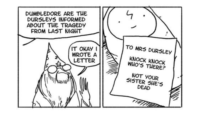 Un Albus Silente impacciato, simpatico e dispettoso, leggermente sbadato e tremendamente più simpatico che mai. Dalla lettera con la quale affida il piccolo Harry a quei gran simpaticoni dei Dursley, fino alle battute scambiate con un’incredula Minerva McGranitt. Insomma, sebbene lo zampino della maestra J.K.Rowling non ci sia neppure di striscio, è certo che l’idea è pazzescamente originale. E lei di sicuro non se la prenderà troppo a male se il caro e buon vecchio Dumbledore verrà un po’ preso in giro da chi in fondo gli ha poi voluto bene.