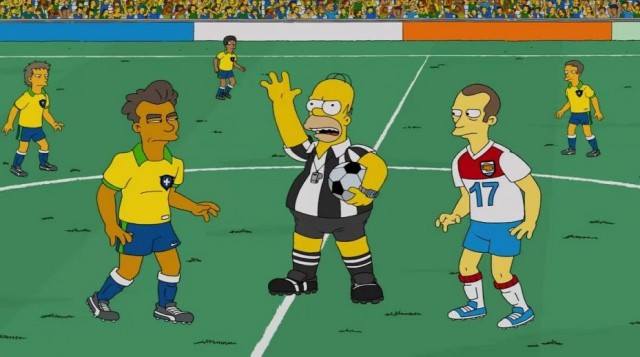 Eppure, i diabolici Simpson lo avevano in qualche modo previsto: nell’episodio andato in onda negli USA lo scorso aprile, un giocatore verde-oro, chiamato El Divo (alter ego simpsoniano di Neymar, spesso accusato di essere un cascatore) prima inizia a simulare infortuni, provocando irritazione in Homer, arbitro d’eccezione della partita, poi finisce per essere vittima (nel vero senso della parola) di un fallo killer di un avversario.