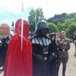 Il 4 maggio in tutto il mondo si celebra lo Star Wars Day, e anche Roma ha risposto per la prima volta presente all’appello. Nella scenografica cornice del Colosseo i fans della famosa saga cinematografica di George Lucas si sono ritrovati per una parata in maschera accanto l’arco di Costantino, con il gran finale di una esibizione nella collinetta attestante l’anfiteatro.
