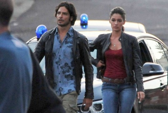 Marco Bocci e la troupe di Squadra Antimafia sul set